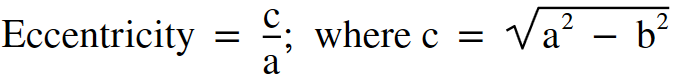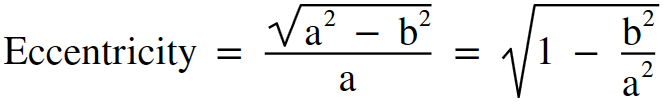 The eccentricity of an ellipse is basically an indicator of its shape, or how "oval" it is. The value ranges from 0 to 1 and is a ratio of 'c' to 'a'. The value of 'c' is the distance between the center vertex and one focal point.