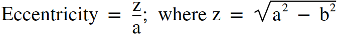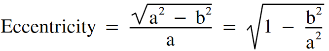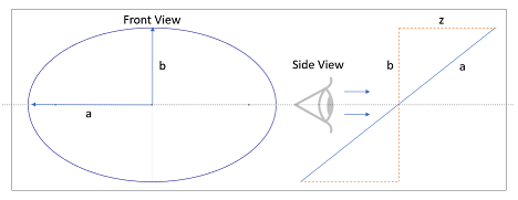 Based on this definition of the ellipse, the eccentricity can be described by how much the circle is rotated in the 'z' direction. More specifically, the eccentricity is the ratio of the value 'z' (depth) over the value 'a' (semi-major axis).