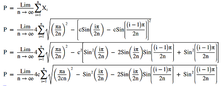 There is no simple equation for the circumference (or perimeter) of an ellipse, though there have been many approximations. Another solution is to calculate the circumference of the ellipse based upon the fact that the ellipse is mathematically identical to viewing a circle at an angle. To accomplish this computation, you begin with a circle of radius 'a', then rotate it in the 'z' direction presenting an ellipse. Futher, this rotation presents an ellipse as a projection which can be used to calculate the perimeter.