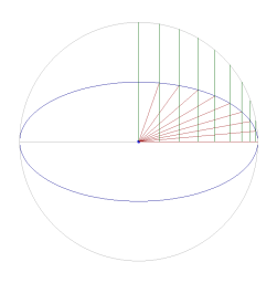 | The circle can then be rotated along the x axis in the 'z' direction, which presents an ellipse as seen in Figure 4. Note that the vertical lines do not change in regards to the x axis. As a result, the height of the vertical lines changes from 'Y', to b/a times 'Y' which can be seen in Figure 5. | |
